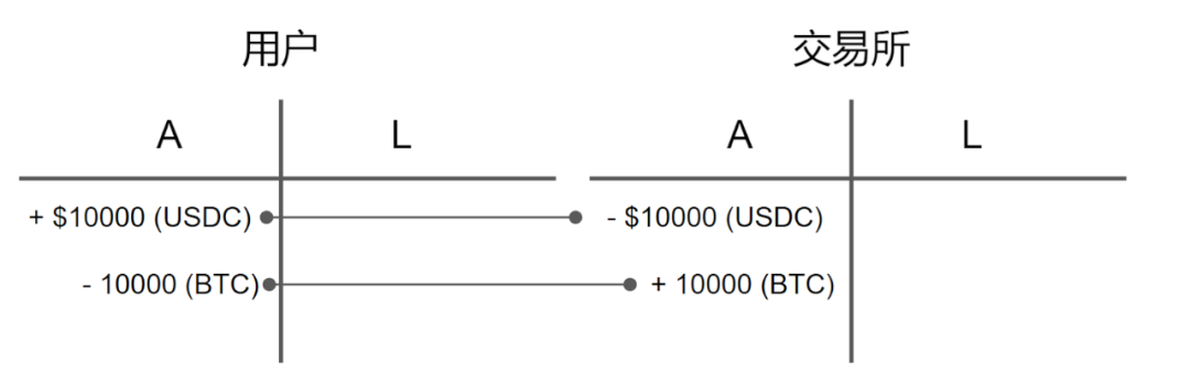 例如,在图 3 的例子中,如果我们把交易对手方(例如交易所)的增量平衡表与该用户并列,则可以得到以下的联合增量平衡表: