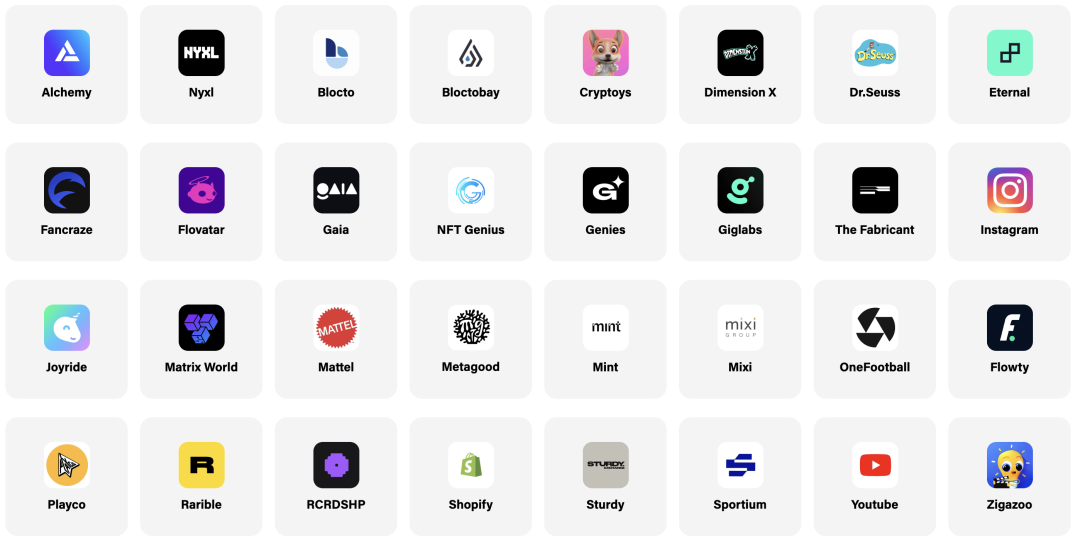 (👆🏻部分与 Flow 合作的品牌与 Web3 应用)