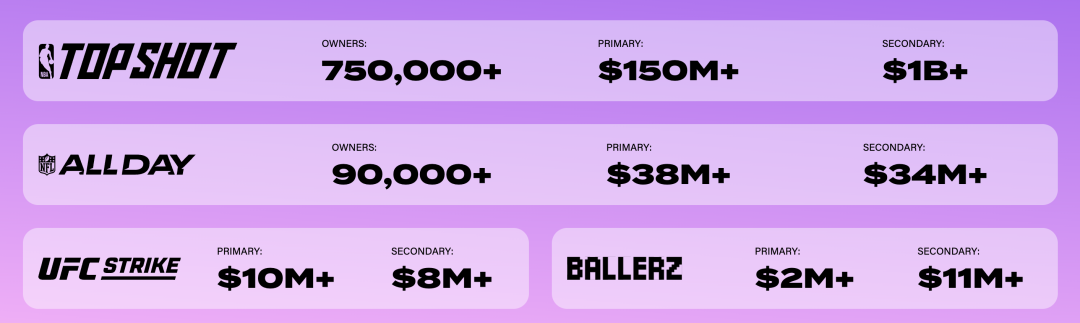 各大体育 IP, NFL, UFC, 西甲等都在 Flow 上搭建自己的 NFT 交易市场;