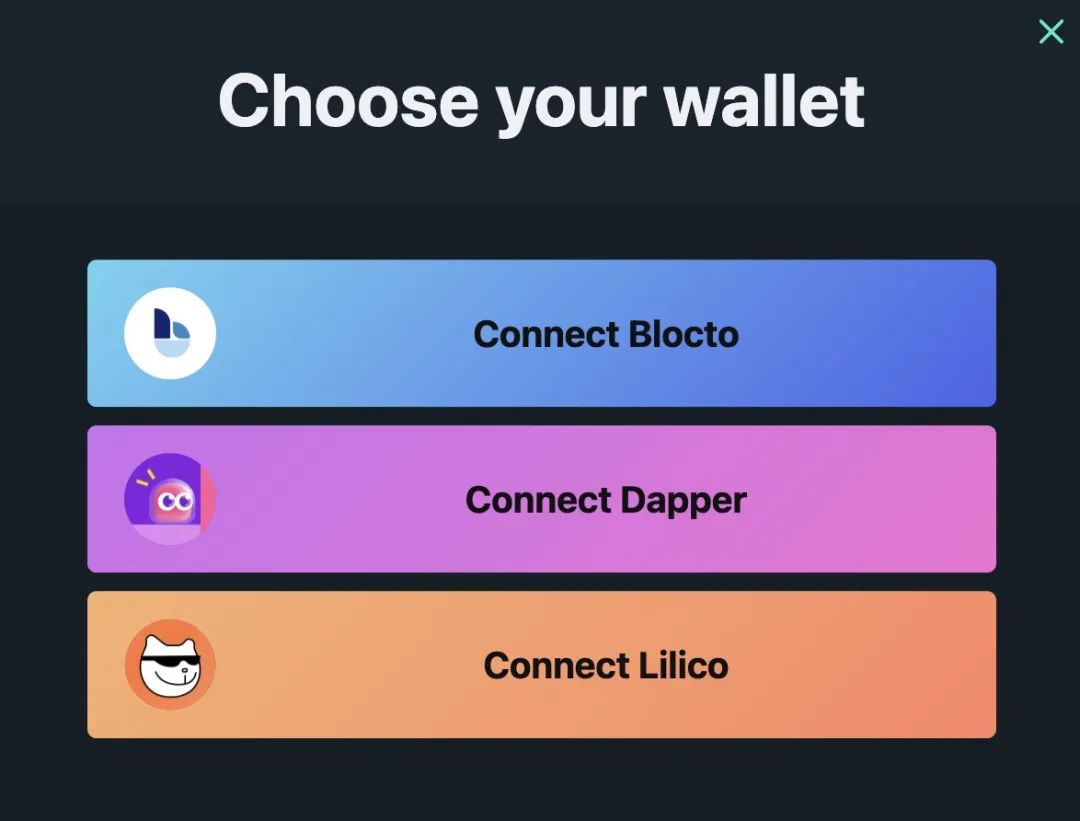 目前大部分的的 Flow 生态项目都支持 Blocto 钱包的登录。