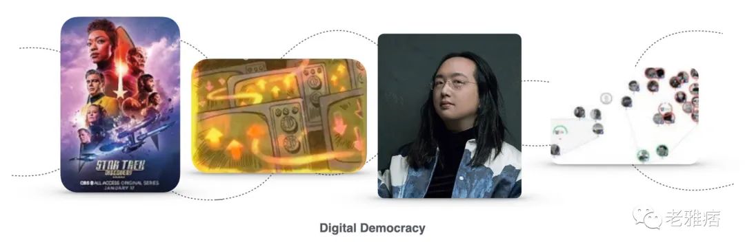 相近概念:多元化,数字多元主义,数字尊严,21 世纪参与式民主,分叉合并政府,维基政府