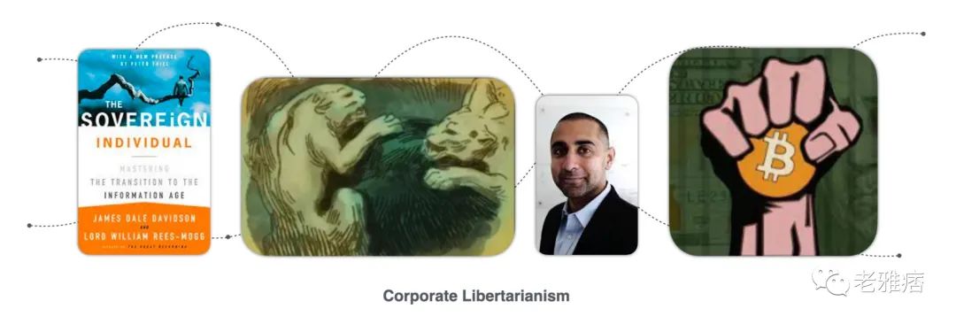 经典著作:Davidson 和 Rees Mogg 的《The Sovereign Individual》,Srinavasan 的《Silicon Valley’s Ultimate Exit》,Moldbug 的《Unqualified Reservations》,Thiel 与 Masters 的《Zero to One》,Jacobite,Neal Stephenson 的《Snowcrash》,John Perry Barlow 的《网络空间独立宣言》