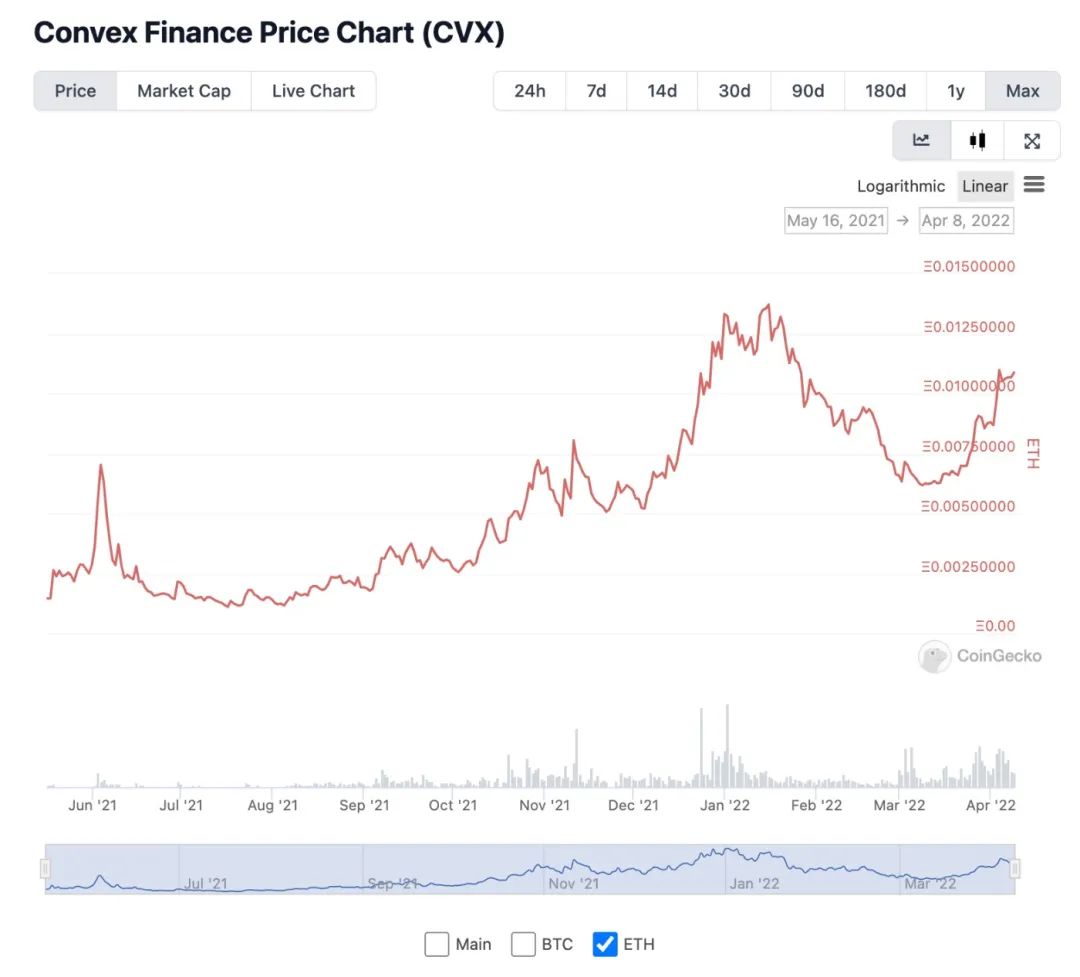 此外,你看看 Convex 对 ETH 的价格,你会发现它的表现好得多。