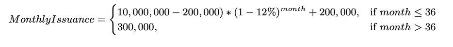 在过渡阶段开始时,每月发行 1000 万,按以下公式计算: