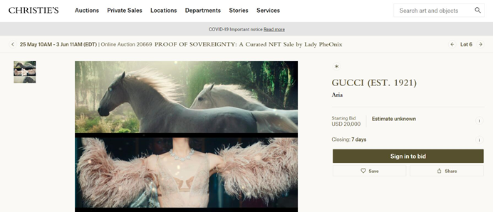 Gucci 第一件 NFT 作品,起拍价 2 万美元