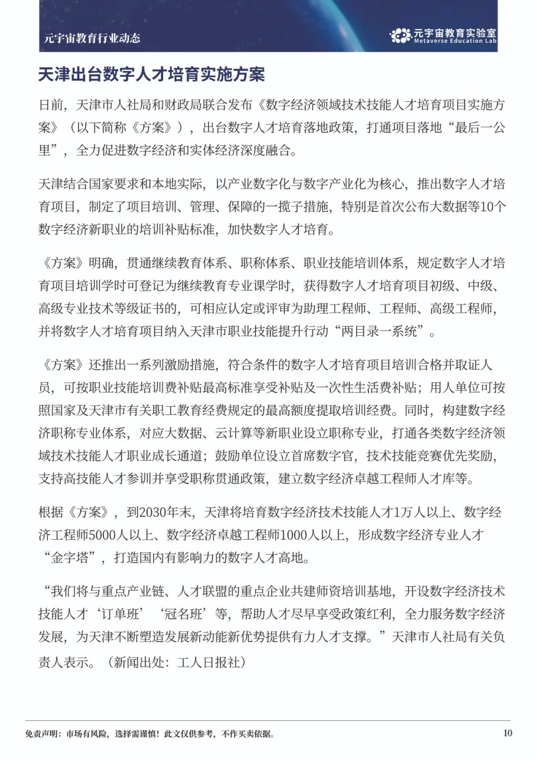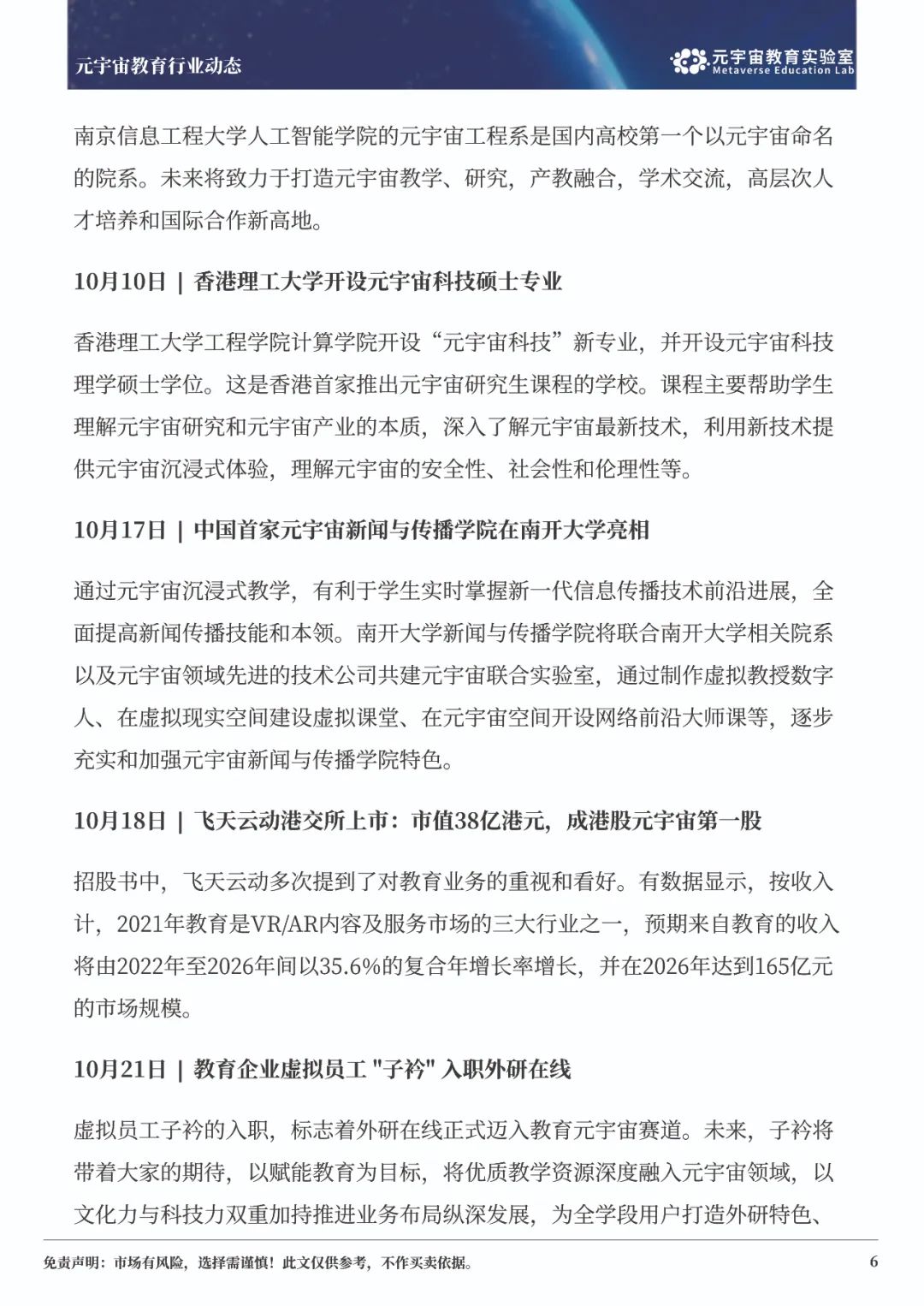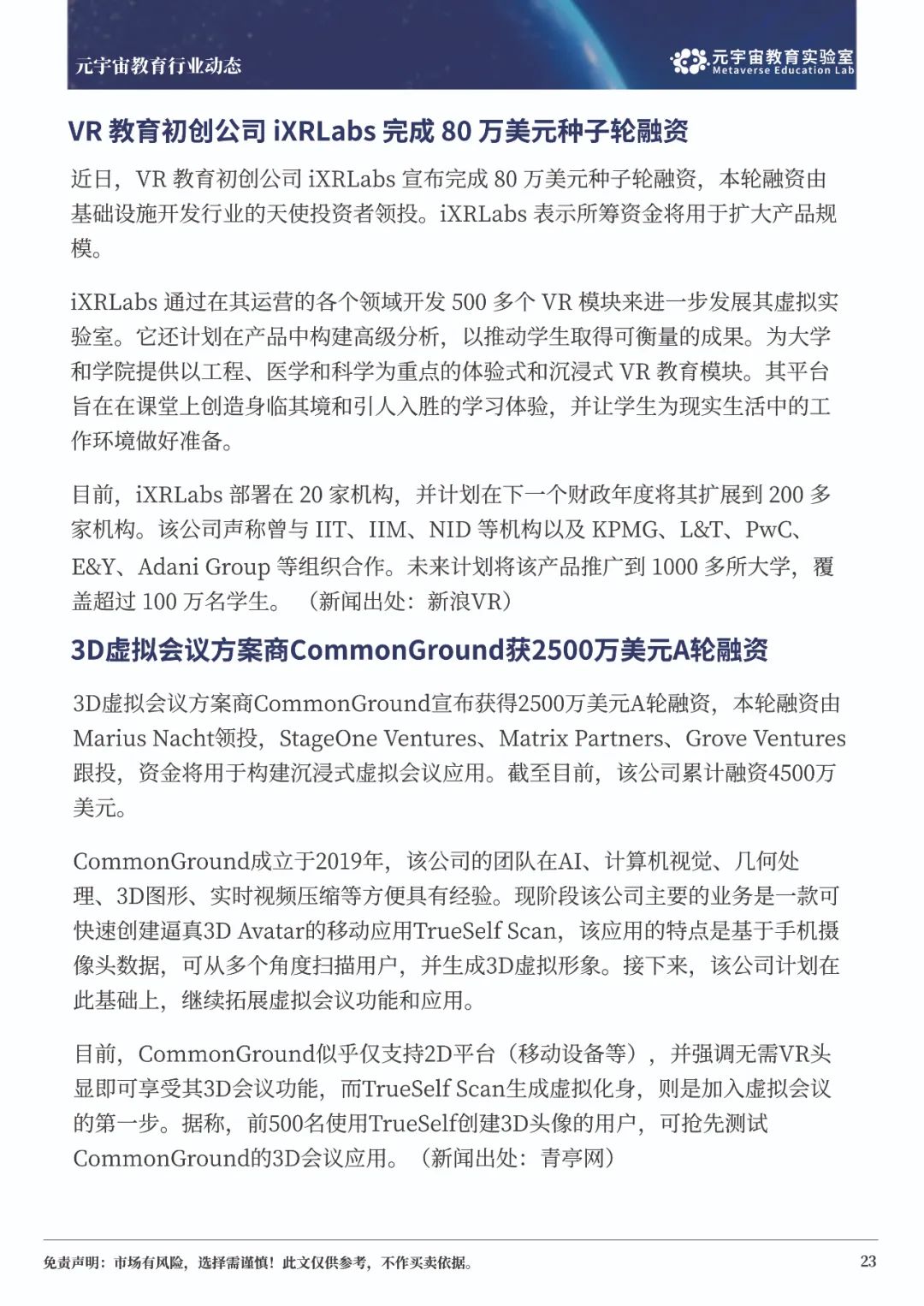 元宇宙教育正在全球范围内快速发展,为帮助全行业建立全局视角,以把握行业风向、判断产业机会、寻找业务思路,元宇宙教育实验室将每月发布一篇元宇宙教育行业动态报告。