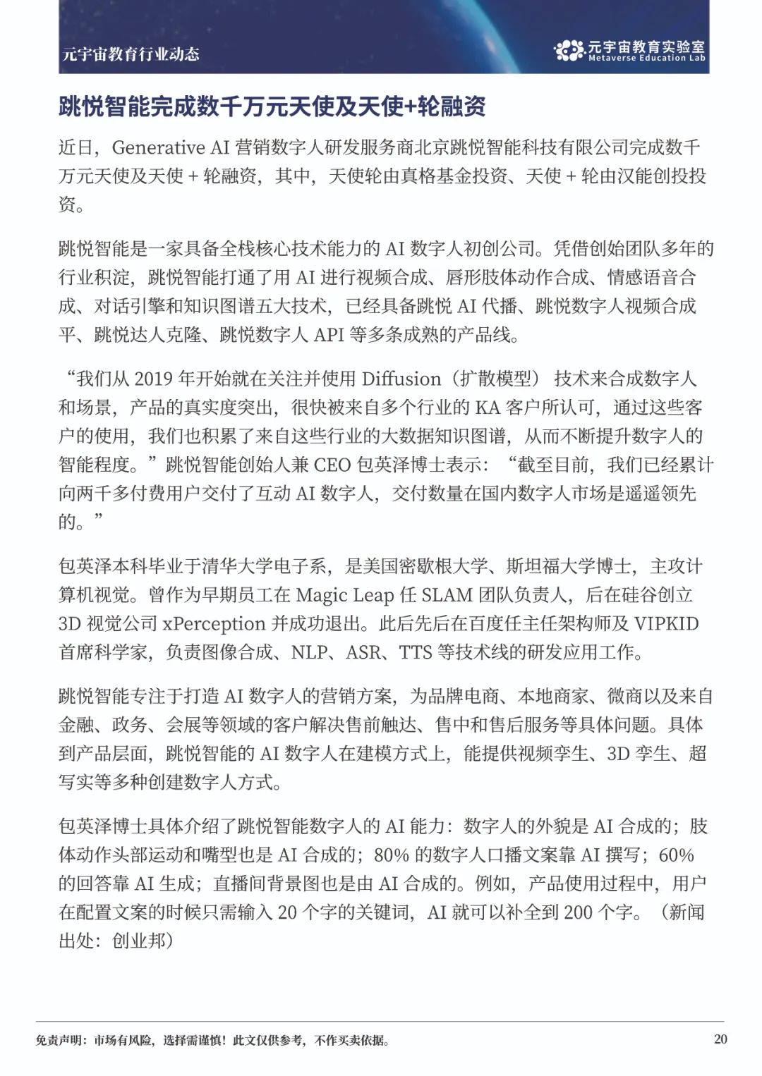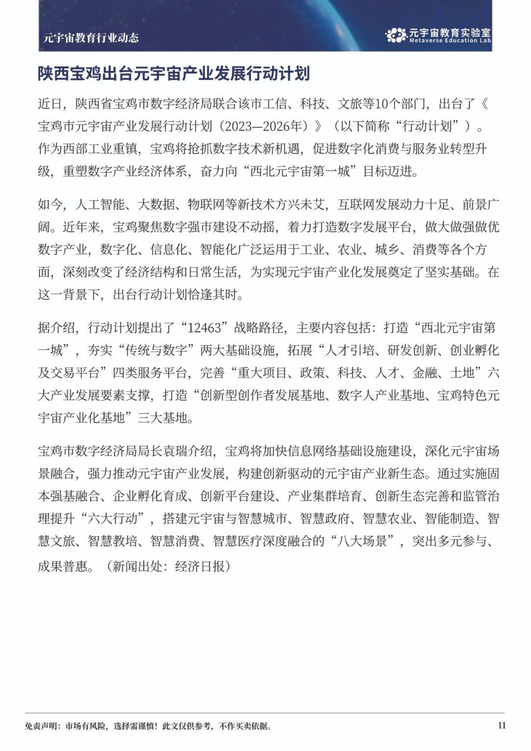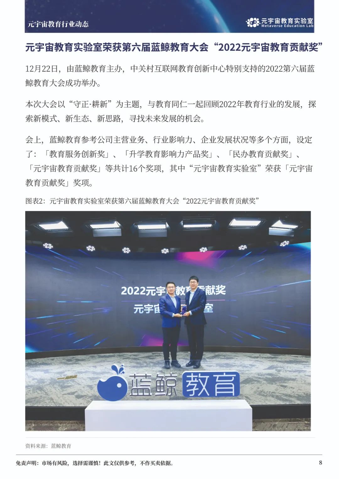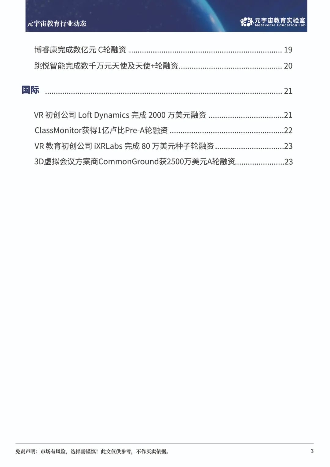 元宇宙教育正在全球范围内快速发展,为帮助全行业建立全局视角,以把握行业风向、判断产业机会、寻找业务思路,元宇宙教育实验室将每月发布一篇元宇宙教育行业动态报告。