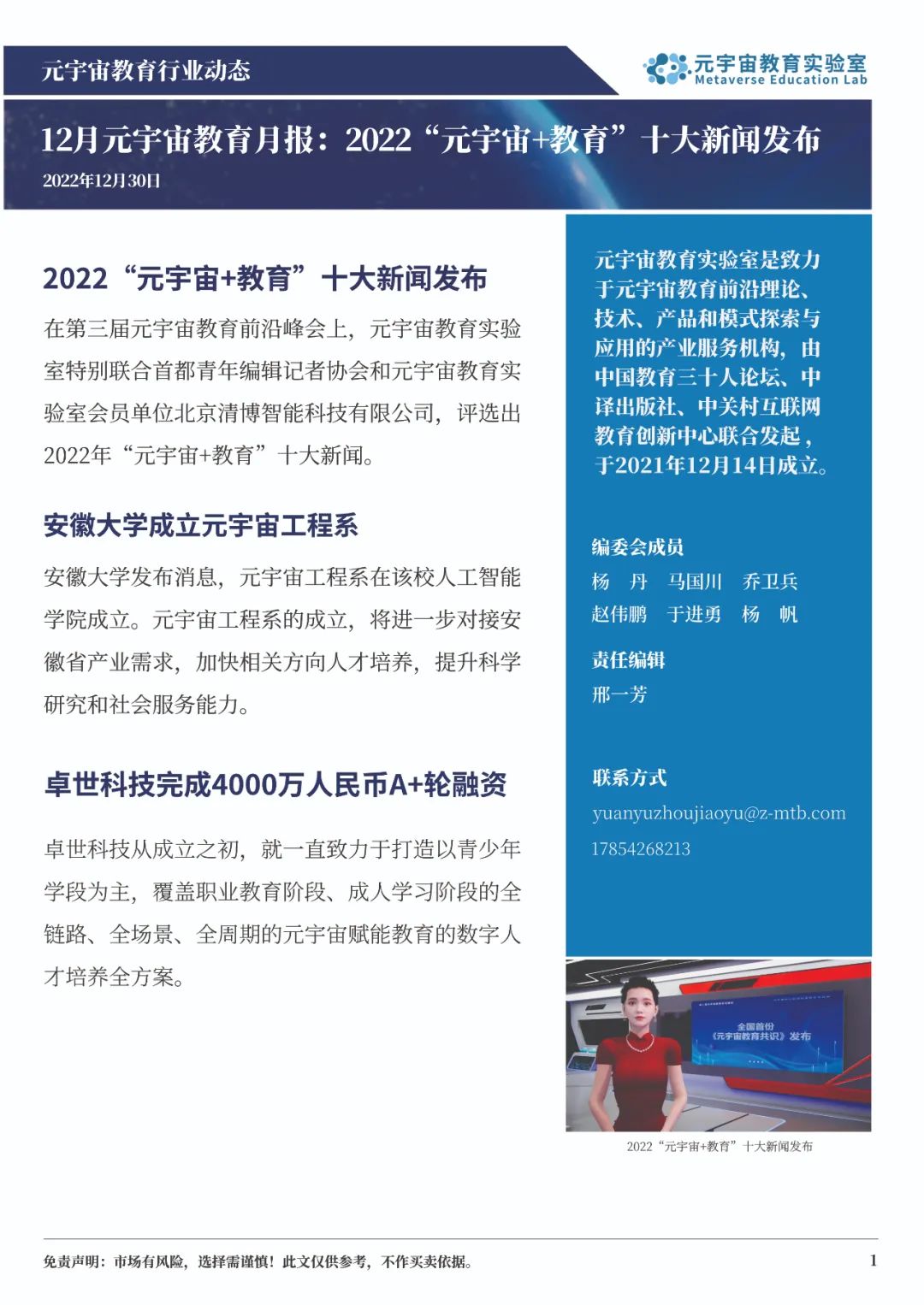 本期为2021 年 12 月全球元宇宙教育动态,敬请查阅。