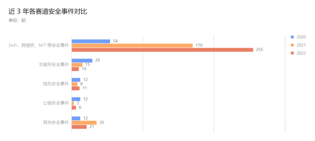 其中各生态 DeFi、跨链桥、NFT 等安全事件 255 起,交易所安全事件 10 起,公链安全事件 11 起,钱包安全事件 6 起,其他类型安全事件 21 起。