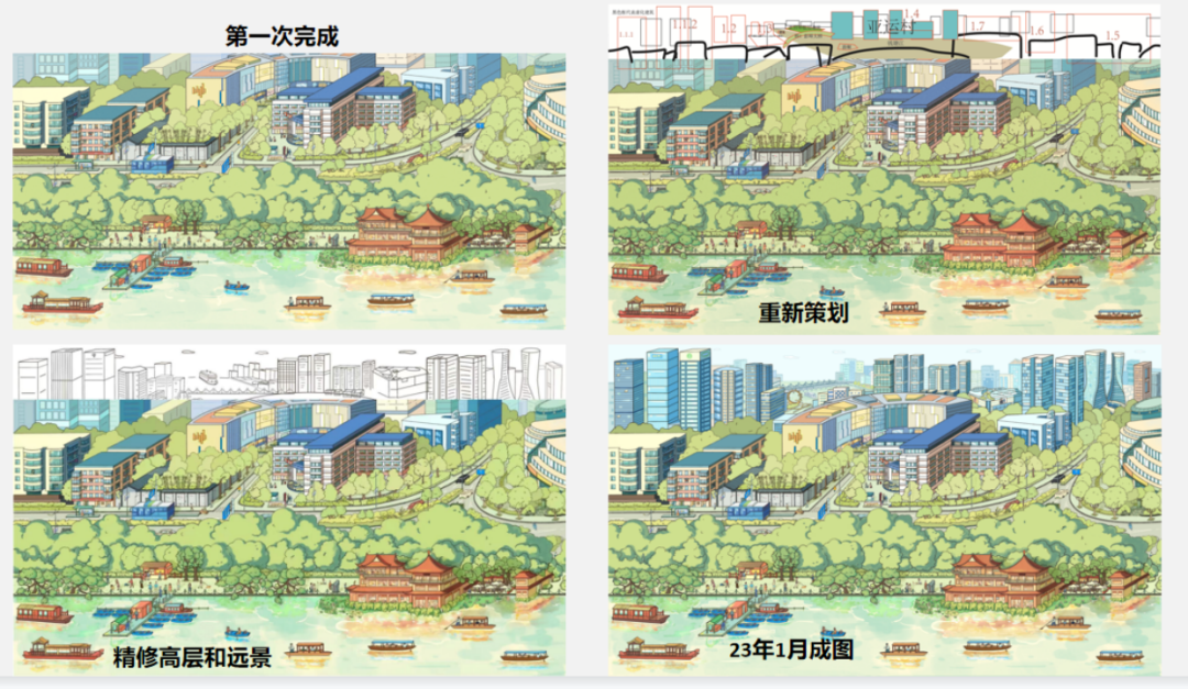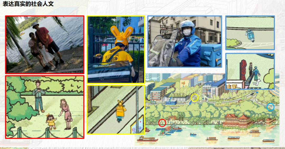 800 多年来,物换星移,西湖边的景观发生了哪些变化?又有哪些恒久不变的景色?白小苏突发奇想,能不能以《西湖清趣图》的结构构图,再结合当下西湖边的景观特色、生活场景,也画一副长卷,倘若这画能流传 800 年,后人岂不是也能从这张图上看到时代变迁?
