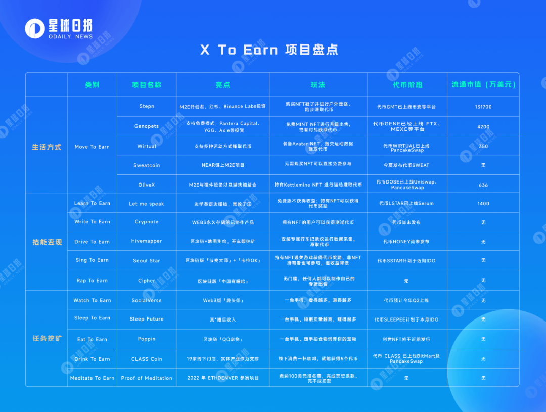 过去一个多月,随着 Stepn(GMT)的大涨,Move To Earn 的模式开始破圈,引起越来越多非加密人士的关注。与此同时,各类 X To Earn 项目也陆续兴起,备受关注。