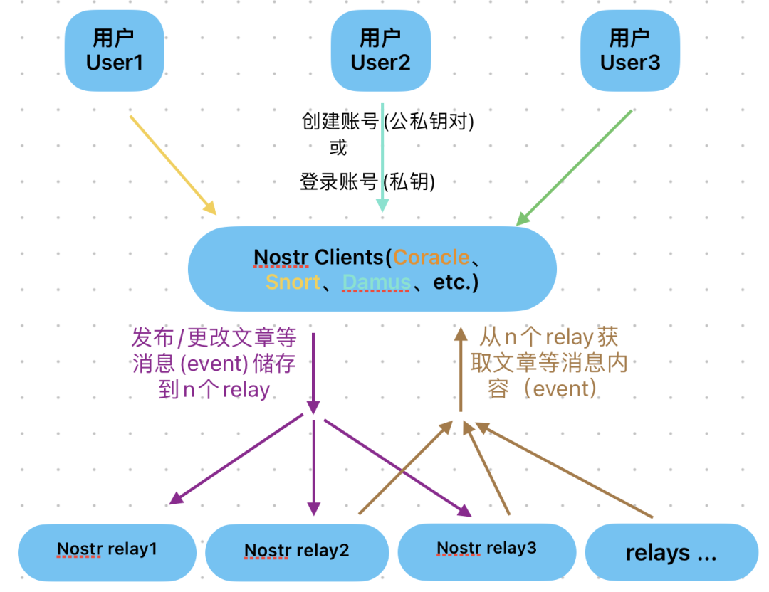 比如用户 A 发布一篇文章到中继 A、B:客户端 A 使用用户 A 的私钥对其进行签名,获取文章时使用用户 A 的公钥对其签名进行验证。如果中继 A 的拥有者对该文章进行更改,则验证也就不通过,客户端也就不会对其进行展示,只会展示从中继 B 获取的正确的文章内容。