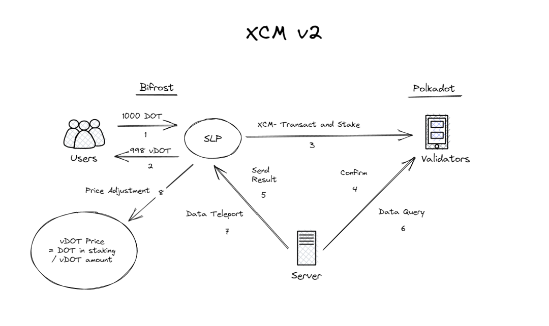 这就是 Bifrost 如何确保每个流动性质押 Token 都被底层质押 Token 完全保留的方式。因此,上面的逻辑主要涉及两个使用 XCM 的操作: