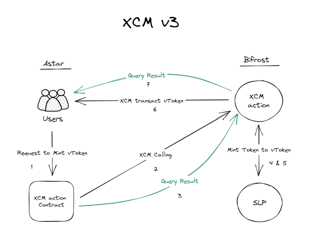 XCM 操作的底层逻辑允许用户在目标链上启动 vToken 铸造。该资产将通过 XCM 交易到 Bifrost,然后铸造成 vToken。随后,vToken 将被转移回给目标链上的用户。这意味着用户不需要自己将资产带到 Bifrost;它将由 XCM action pallet 自动处理。