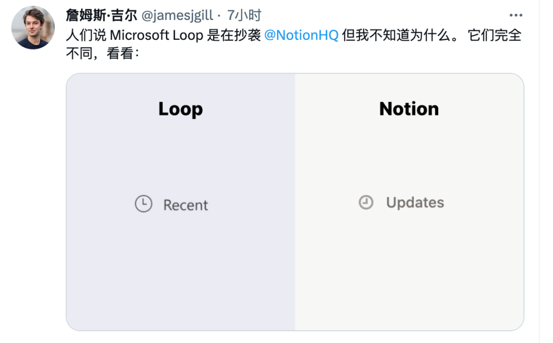 Loop 真的跟 Notion 很像,所以推特上的用户都在吐槽,这不是抄袭么?但是微软官方是这么回复的: