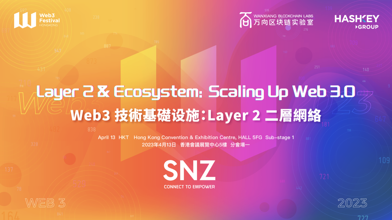 4 月 13 日,由 SNZ 与主办方联合组织的以「Web3 技术基础设施:Layer 2 二层网络」为主题的 2023 香港 Web3 嘉年华分会场将聚焦 Layer2 和 ZK。