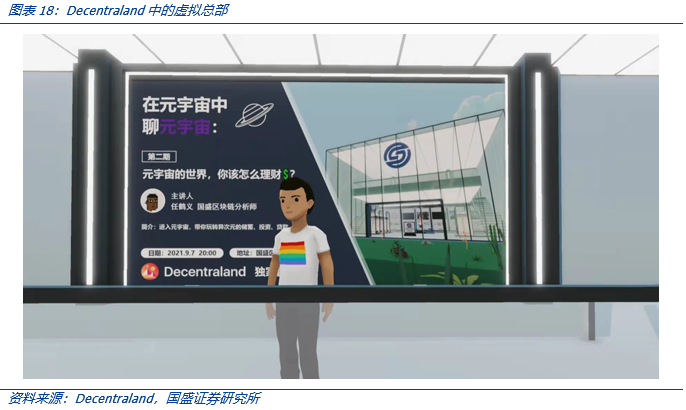 2021 年时,我们试着在 Decentraland 中修建了首座元宇宙虚拟总部——“国盛区块链研究院”(坐标 62、28),并尝试进行了几场线上路演,当时还吸引了圈内外不少朋友关注,但作为元宇宙早期产品,Decentraland 做了大开脑洞的尝试,却无法真正构建数字空间,其原因在于: