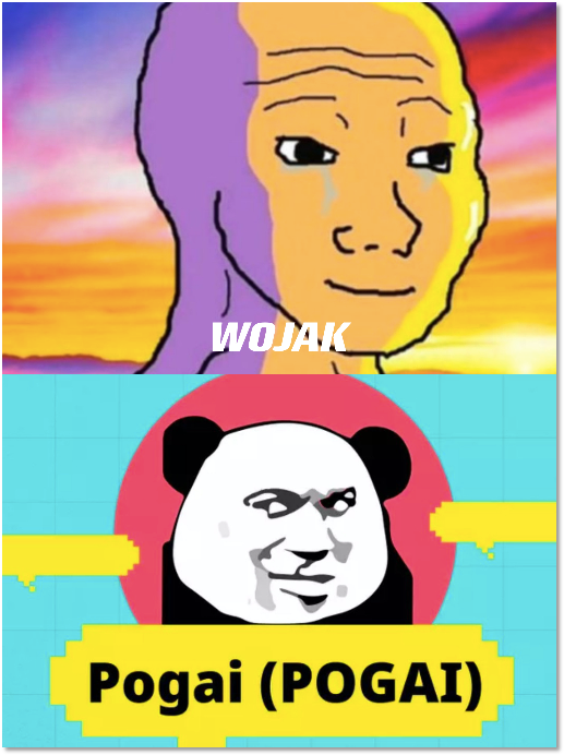 PEPE 币官网介绍链上分析师余烬观察到,一名巨鲸曾花费了 108 万美元购入了 PEPE 币,几天之后就涨到了 1600 万美元,1 个“小目标”轻松到手。PEPE 币火了之后,它的身份也升级了,按照币圈人的说法,“土狗”变“金狗”,引来很多“土狗”争相效仿,包括取自《英雄联盟》游戏角色“亚索”技能语音的 Hasaki(HAHA)币,发源于熊猫头恶搞表情包的 POGAI 币,以及人人都眼熟的抬头纹沮丧光头男表情包衍生的 WOJAK 币。今年这波投机潮还赶上了比特币网络于 3 月被开发出的 BRC-20 代币标准,许多项目开始在比特币网络上发行 meme 币,给这股“土狗”投机热又提供了一个好由头。