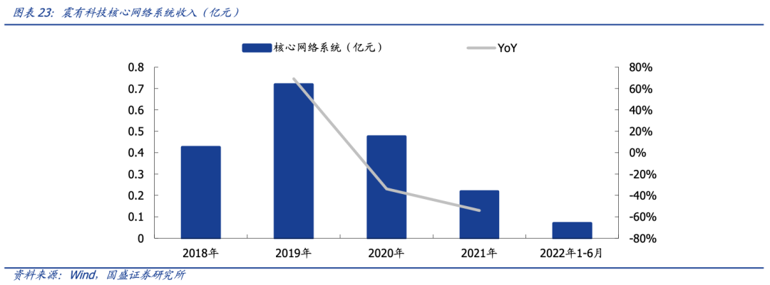 受贸易环境等因素影响,公司 2020、2021 年的海外业务收入下滑严重。从上文的数据分析可以看到,公司的核心网络系统收入在 2020 年和 2021 年分别同比下滑了 33.9% 和 54.1%。一方面是受到进出口受限的影响,另一方面是日本禁令、中印冲突等因素使得公司在海外的传统市场日本、印度的客户拓展受阻。为此,公司努力克服阻碍争取重返印度、日本市场,目前正在申请印度运营商项目的招投标资质。