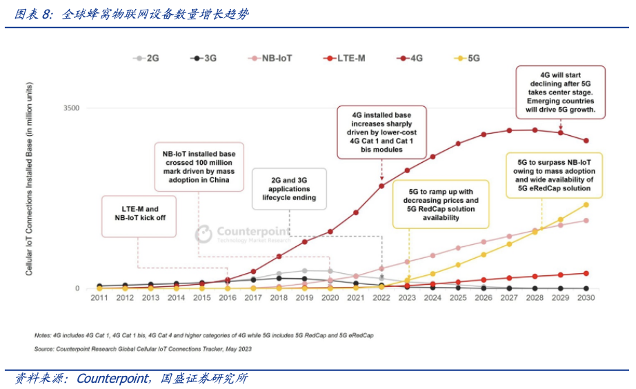 报告认为蜂窝物联网设备将以 10.8% 的复合年增长率增长,预估在 2030 年会突破 60 亿台。