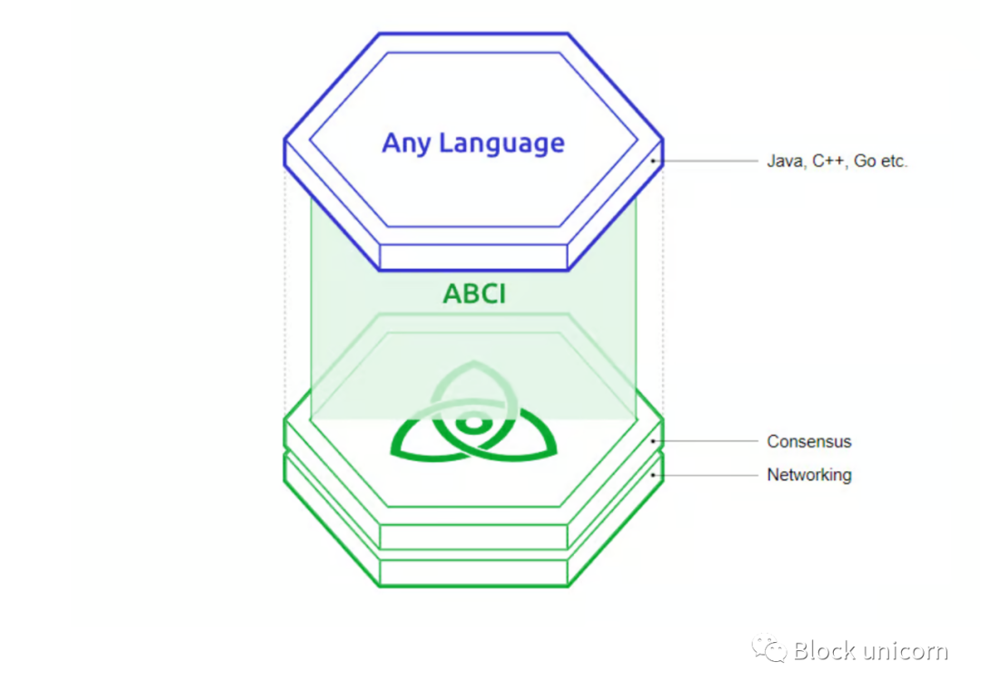 Block unicorn 注释:ABCI 代表"Application Blockchain Interface",它是 Tendermint 架构中的一个重要组成部分。ABCI 定义了应用程序与 Tendermint 共识引擎之间的接口规范。它允许开发者使用自定义的应用程序逻辑来构建和扩展 Tendermint 区块链,而不必修改 Tendermint 引擎本身。
