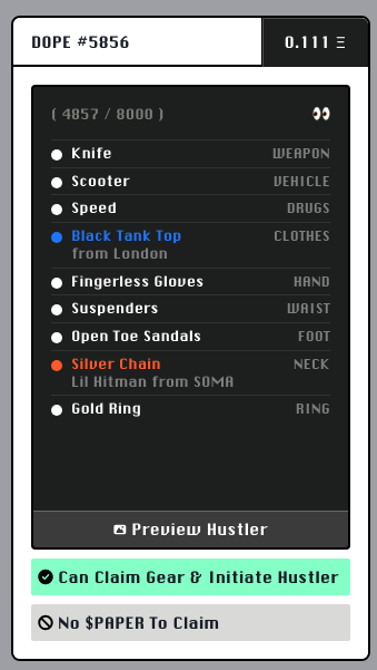 BUY Gear: https://dopewars.gg/swap-meet/hustlers or Secondary NFT Market.