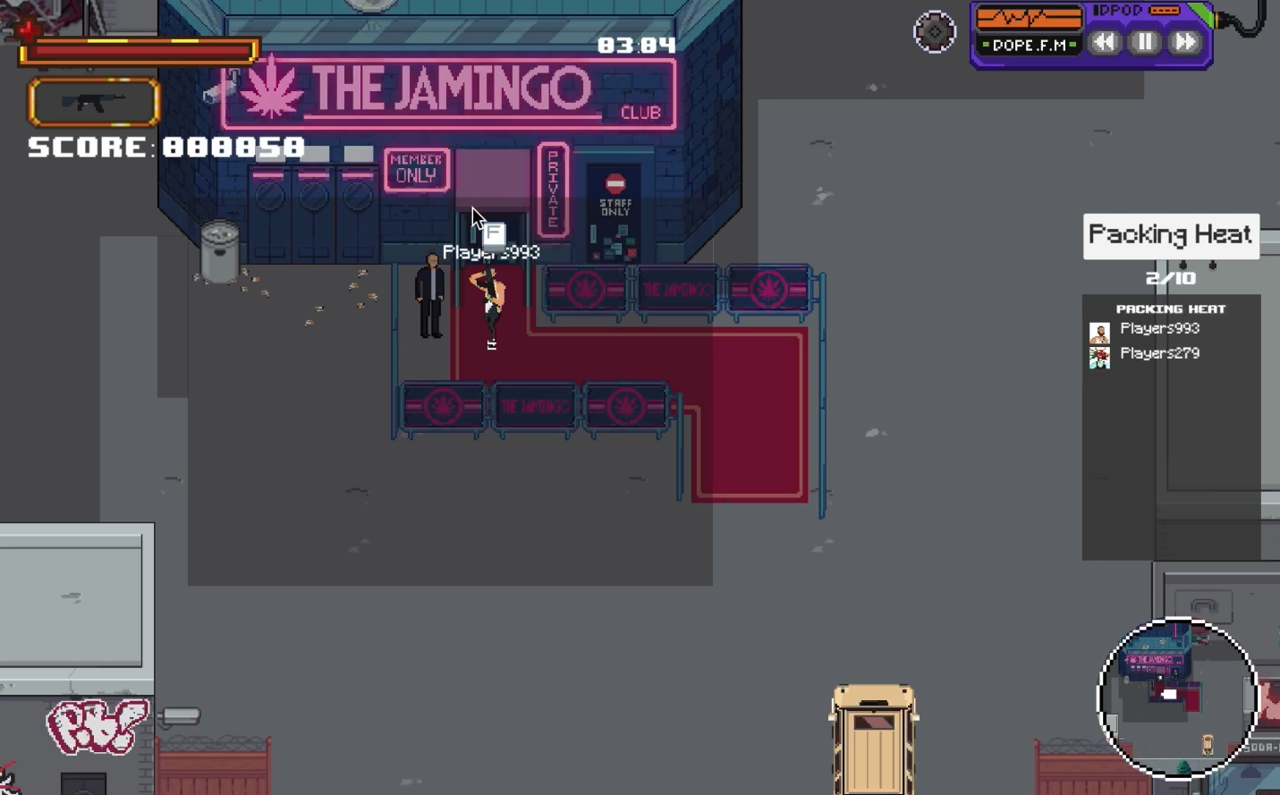 Items will have stats that influence gameplay. For example, rocking an ak47 could make you slow, less likely to be mugged, and more likely to be chased by the cops. In this iteration, hustlers will be able to select a loadout before joining a lobby.