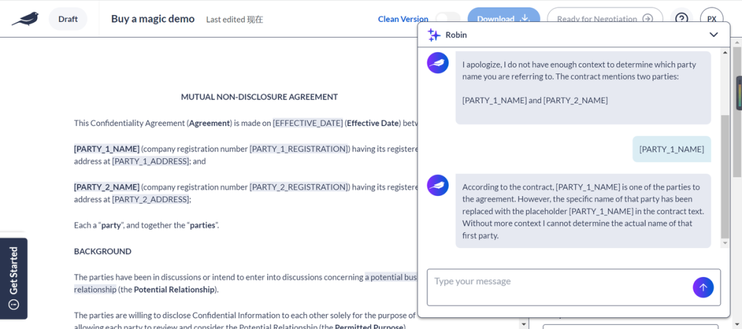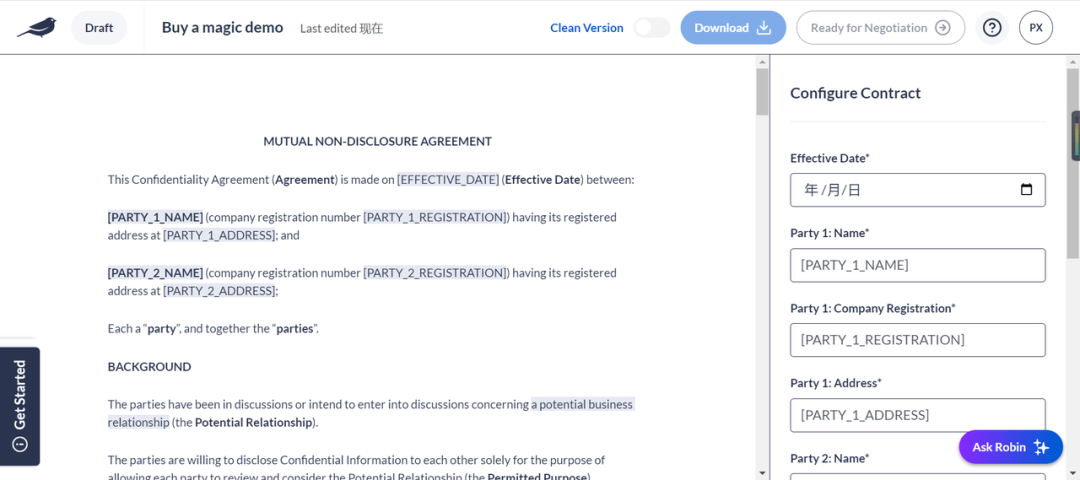 方便合同填写,并且可以 Ask Robin
