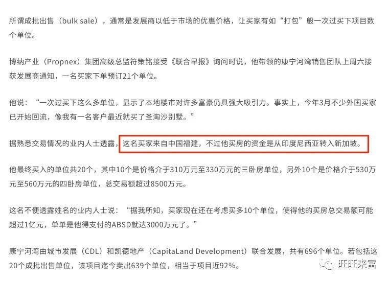 仔细观察就会发现,不少媒体在报道此事的时候,会加上一句:据熟悉交易情况的业内人士透露,这名买家来自中国福建,不过他买房的资金是从印度尼西亚转入新加坡。