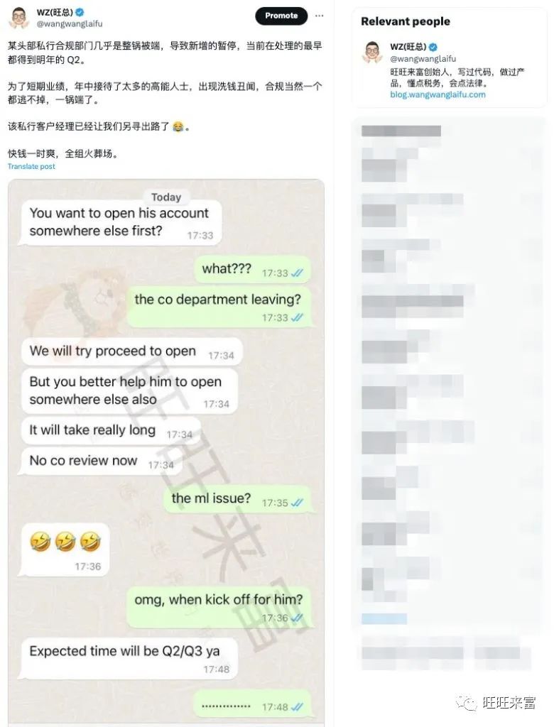 我们早年去年新加坡某私行停止 onboarding 新客户,整个合规部门全部换了一波人,就可以看出端倪,具体的可以参考我们的 Twitter 链接。