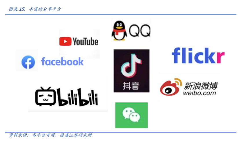 随着互联网快速发展,分享平台迅速增加。其中好友社交形平台有 Facebook、QQ 动态、微信朋友圈;视频分享形平台有 YouTube、优酷、哔哩哔哩、抖音等;照片分享网络有 Flickr、又拍网;社区论坛形平台有百度贴吧、天涯社区、知乎等,另外还有流行度更广、及时性更强的平台如微博、Twitter 等。