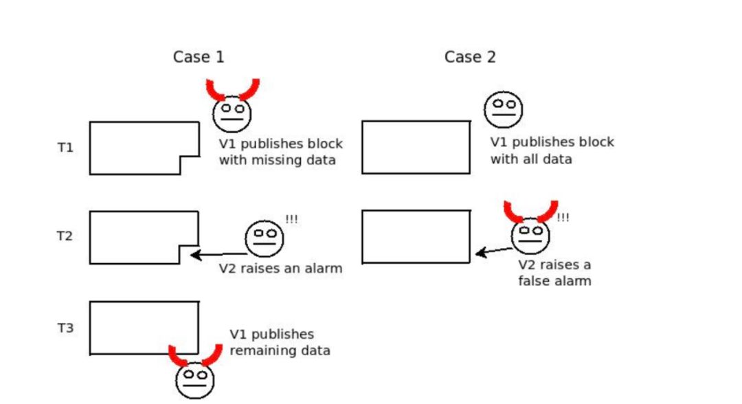 发布无效数据其实很容易处理,因为一旦数据在链上发布,有许多方法可以确定它是否有效,并且将提交的无效数据标记为无效,提交者也会因此受到严厉的惩罚。另一方面,不可用数据相比而言会更难处理,因为即使遇到挑战也无法检测到不可用性,也无法精准确定这些未发布的数据到底是谁的错误,尤其是在数据被默认保留的情况下,仅当某些验证机制试图验证其可用性时才按需显示。这一点在「渔夫困境」(Fisherman’s dilemma)中得到了说明,即在一个挑战响应游戏中,无法区分恶意提交者和恶意挑战者:
