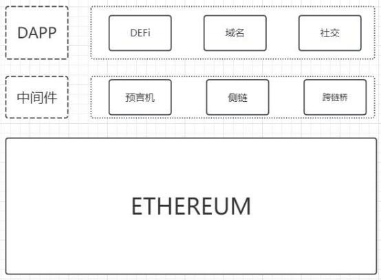 2015 年,以太坊网络的出现,允许构建各种去中心化应用程序(dApp),但是 它的性能和可编程性有限,需要依赖于 Layer 2 和其他中间件来扩展和创新。