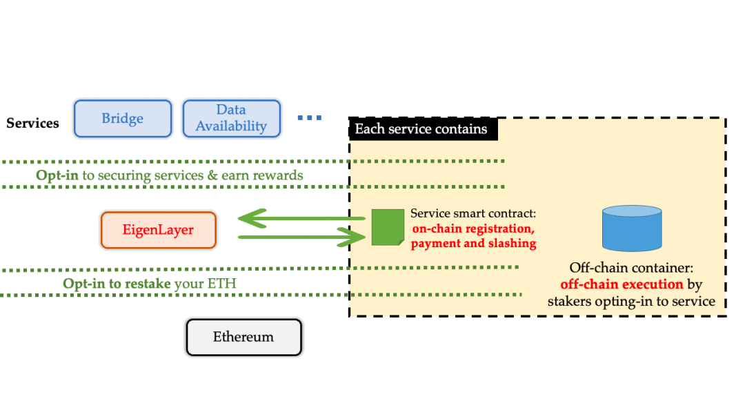 借助 EigenLayer,以太坊 质押者可以通过重新质押其已质押的 ETH、同时选择众多服务并提供集合安全来帮助保护多种服务的安全。这不仅降低了质押者参与的资金成本,而且还显着增加了单个服务的信任保证。