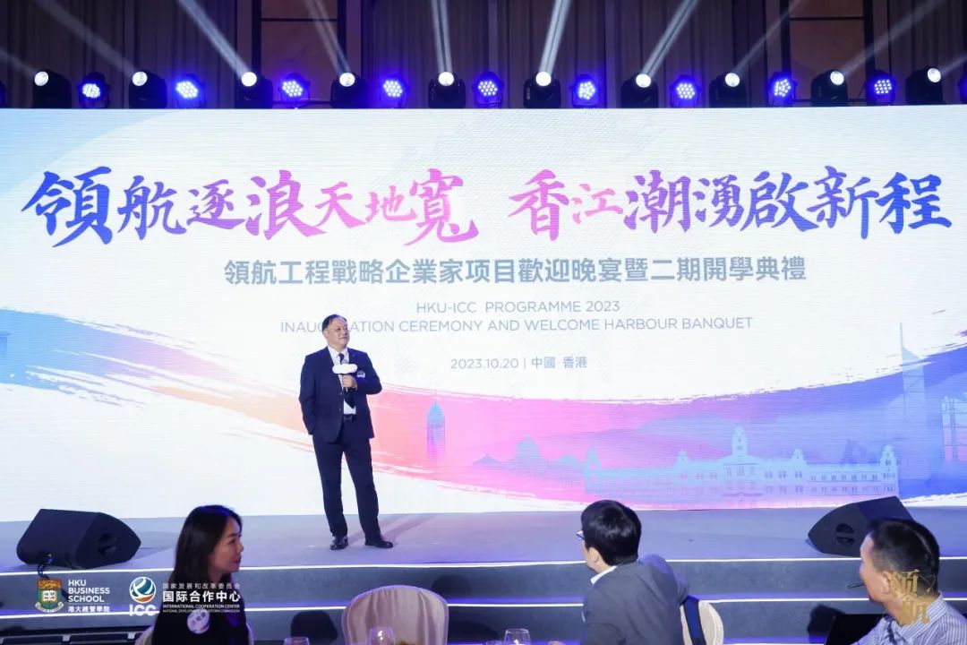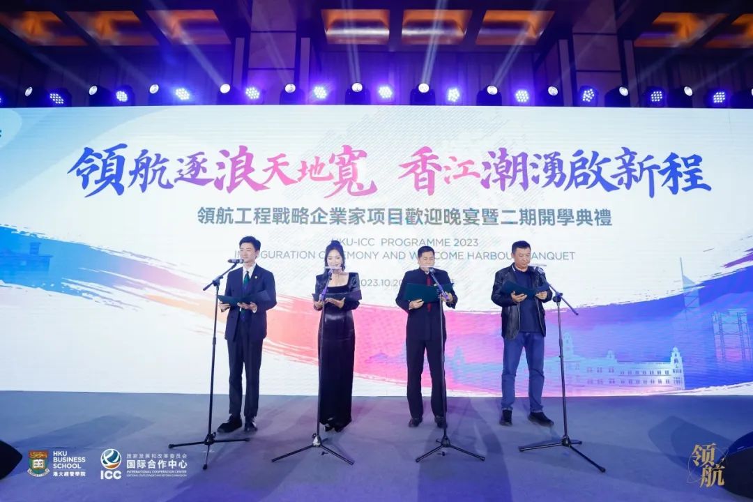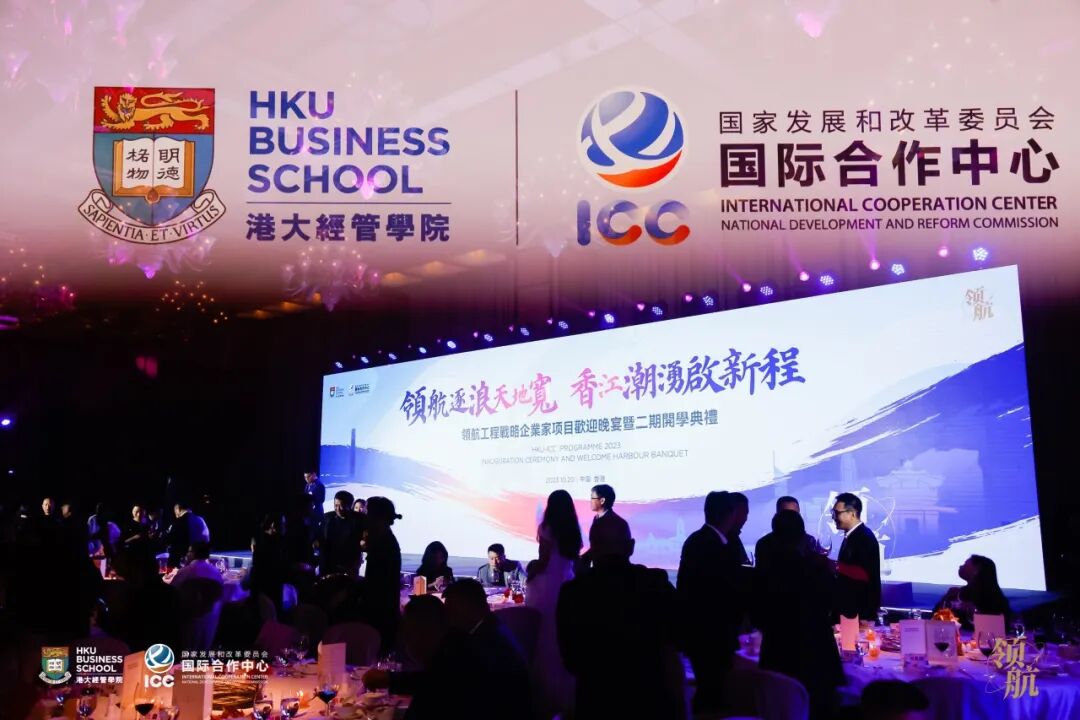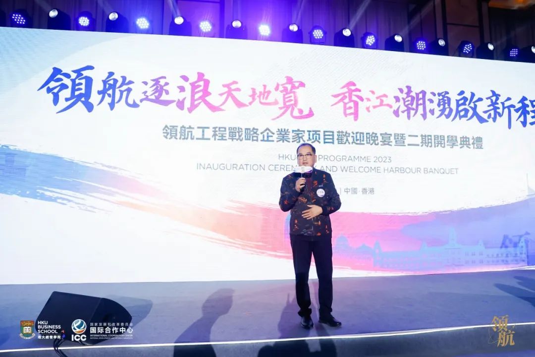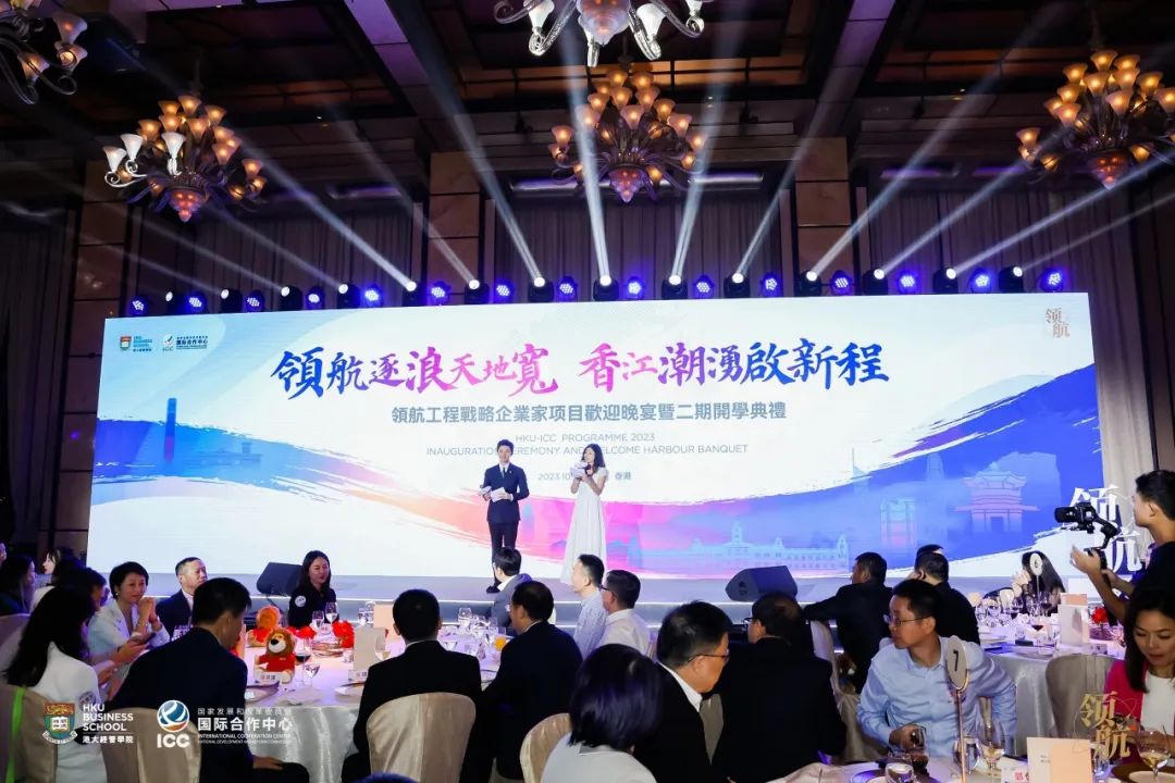 是夜,领航工程战略企业家项目欢迎晚宴暨二期开学典礼圆满举办。香港大学经济及工商管理学院院长、经济学讲座教授蔡洪滨教授,国家发展和改革委员会国际合作中心主任袁锋先生,香港交易所董事总经理、首席中国经济学家巴曙松教授,世纪城市集团副主席及执行董事、富豪酒店集团副主席兼董事总经理、可持续科技学院创办人罗宝文女士,野村国际(香港)董事总经理陆挺先生,香港大学协理副校长、香港大学经济及工商管理学院副院长林晨教授,香港大学政治学教授、当代中国与世界研究中心主任李成教授等嘉宾出席晚宴。