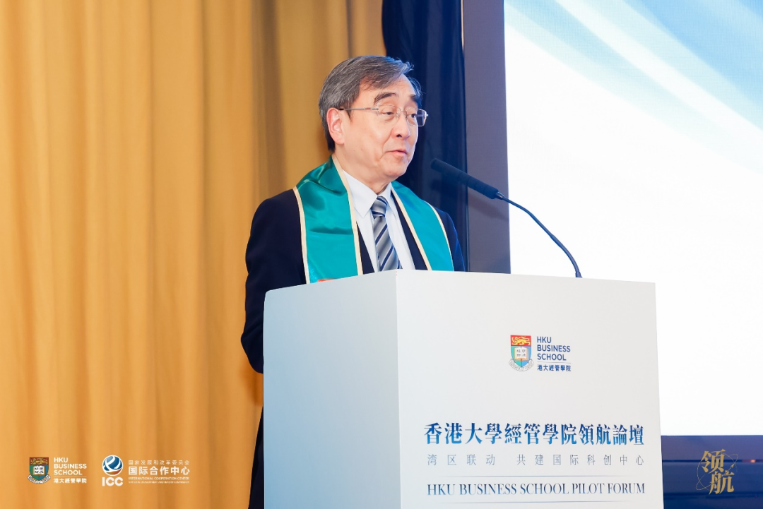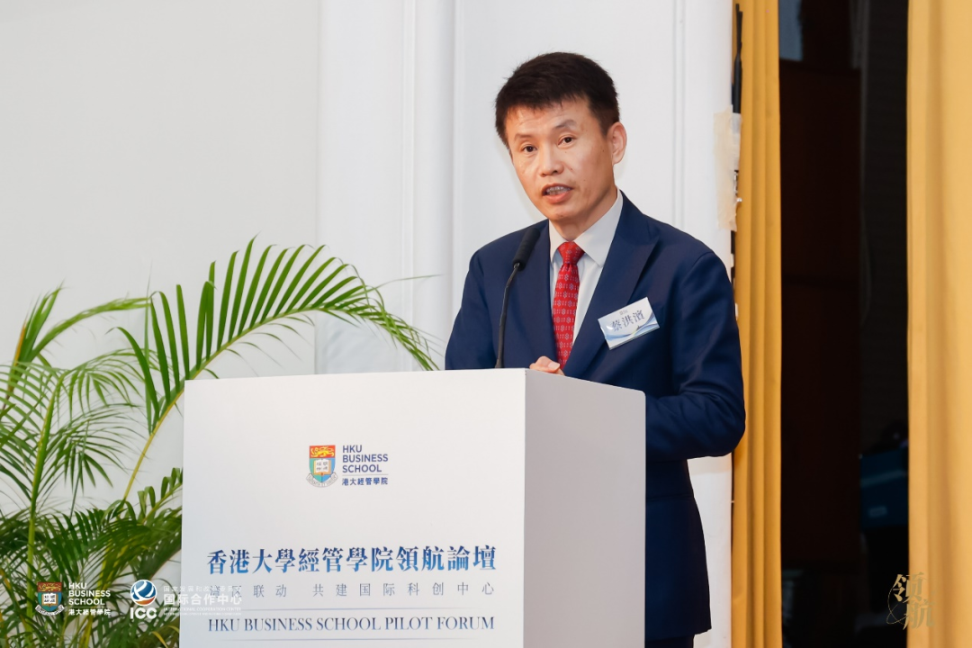 香港大学经济及工商管理学院院长、经济学讲座教授蔡洪滨教授在致辞中表示国际创新科技中心是国家对香港的发展定位。粤港澳大湾区具有“一国两制”的特殊性,加速构建跨境协同创新机制和网络是建设国际科技创新中心的关键。香港大学经管学院提供最前沿的商业和技术研讨,帮助理清技术变革下行业发展的轨迹,发现变局中的独特机遇;培养更多优秀的商业人才,贡献更多的智慧和力量;积极创新并为社会带来正面影响。