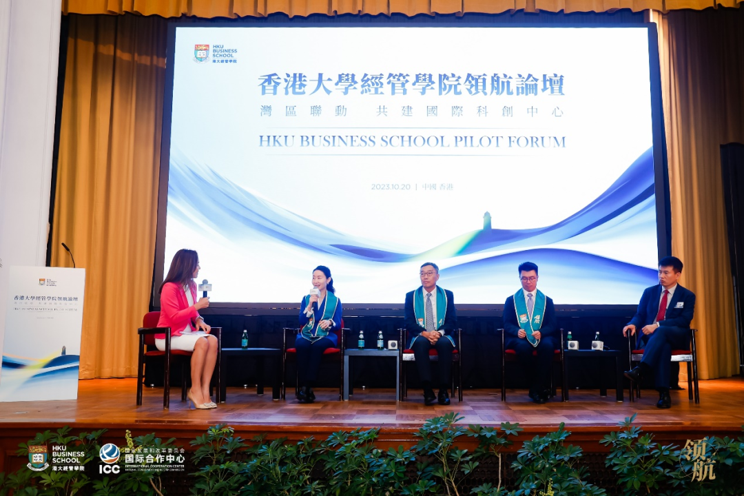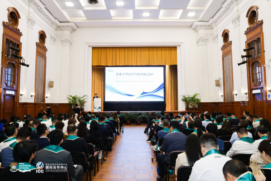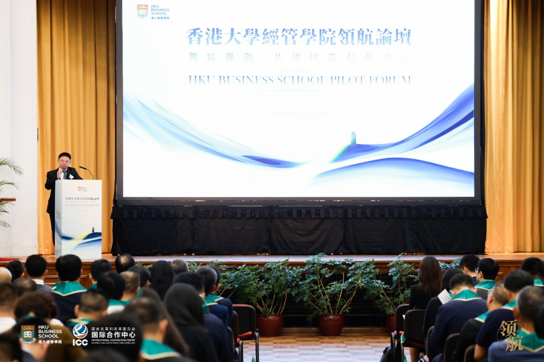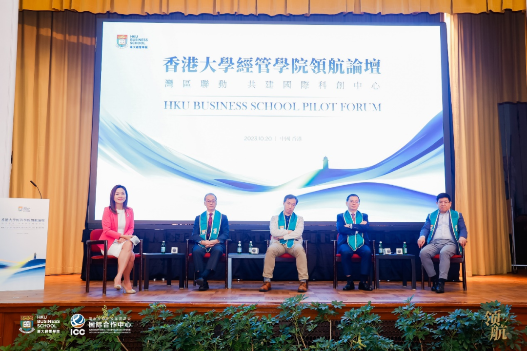 10 月 20 日,由香港大学经管学院主办的领航论坛于香港大学陆佑堂隆重举行。香港特别行政区创新科技及工业局局长孙东教授,国家发展和改革委员会国际合作中心主任袁锋先生,香港大学首席副校长、香港大学经济及工商管理学院经济学讲座教授、黄乾亨黄英豪政治经济学教授王于渐教授,香港大学经济及工商管理学院院长、经济学讲座教授蔡洪滨教授,原香港特区政府财政司司长、黑石集团前大中华区主席、南丰集团董事长、新风天域集团董事长兼联合创始人梁锦松先生,中国国际金融股份有限公司董事总经理黄海洲先生,香港科技园公司 CEO黄克强先生,野村国际(香港)董事总经理陆挺先生,香港特别行政区第七届立法会议员、新世界集团研究部总经理洪雯女士,香港大学协理副校长、香港大学经济及工商管理学院副院长林晨教授,香港大学协理副校长、香港青年科学院院长岑浩璋教授,香港大学经济及工商管理学院副院长沈海鹏教授,香港大学亚洲环球研究所亚洲环球学者计划总监郭国全先生等领导代表出席论坛。
