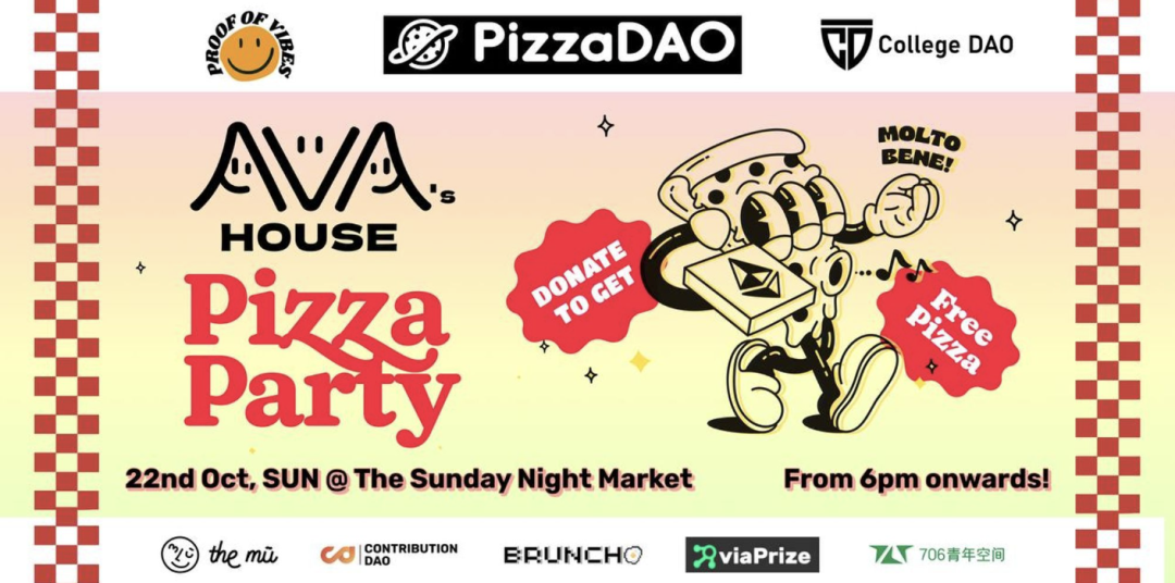加入我们在周日夜市,免费品尝披萨!支持本地儿童收容所 Ava's House 的使命,为村庄学生提供可持续教育。PizzaDAO 在周日夜市为任何人提供免费披萨!