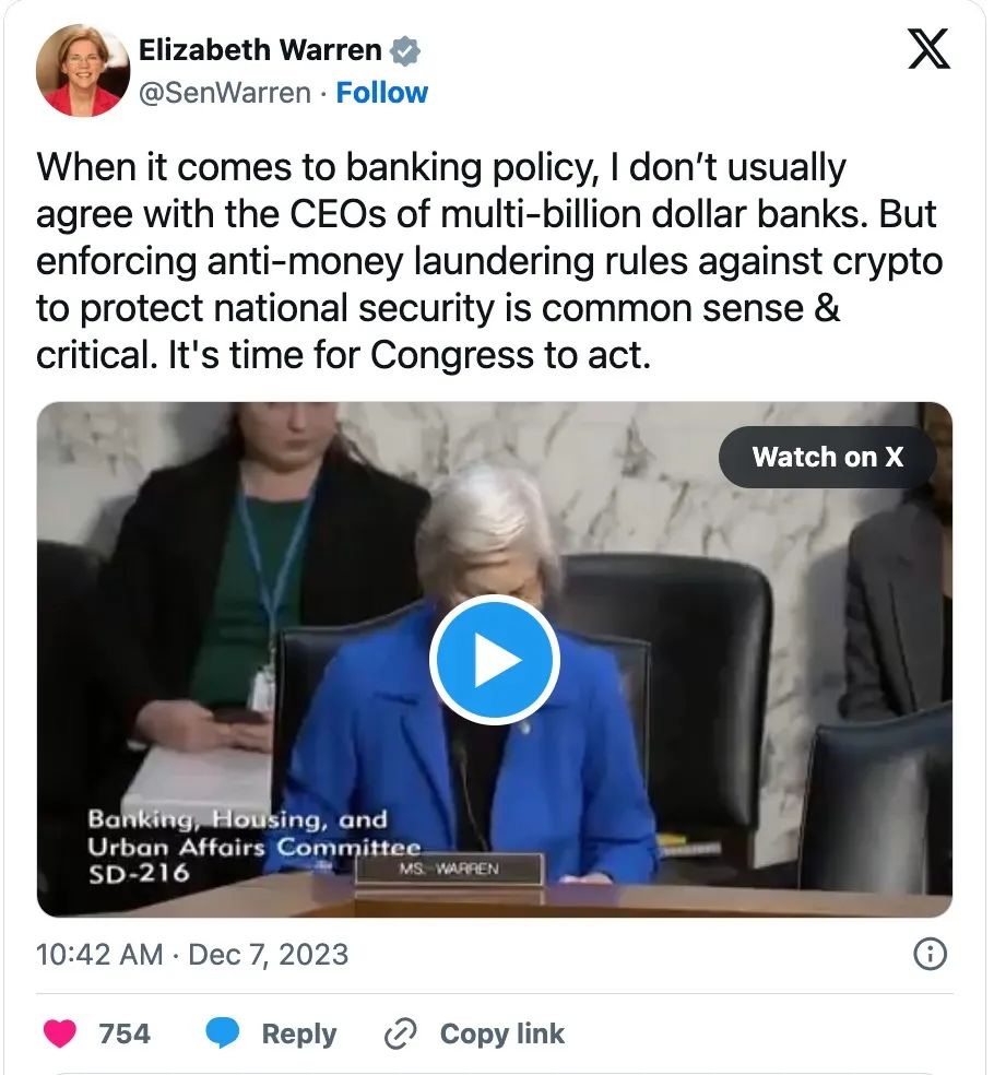 至于像下面这位愚蠢的农民,几周前还兴高采烈地宣称,在她愚蠢的反加密货币运动中,连银行首席执行官都站在了她这一边......