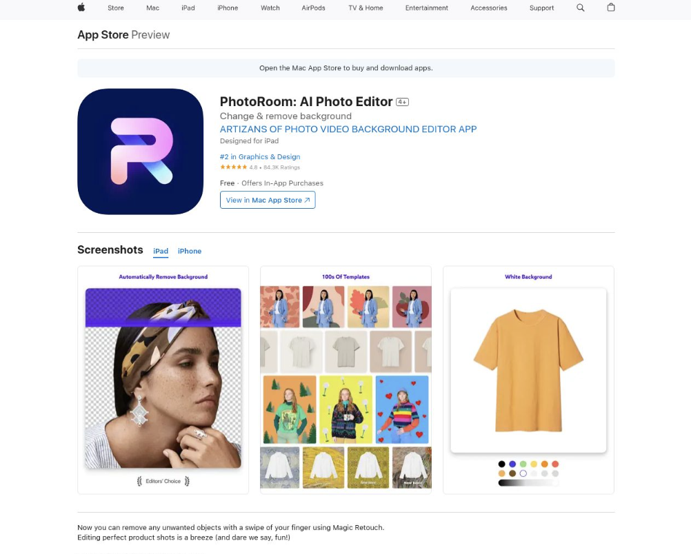PhotoRoom 位于法国巴黎的 AI 初创公司,构建了一个基于 AI 的流行图像编辑软件和 API,面向电子商务卖家、媒体专家等。