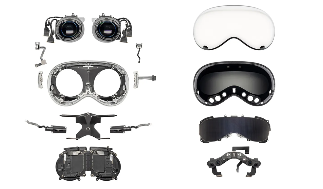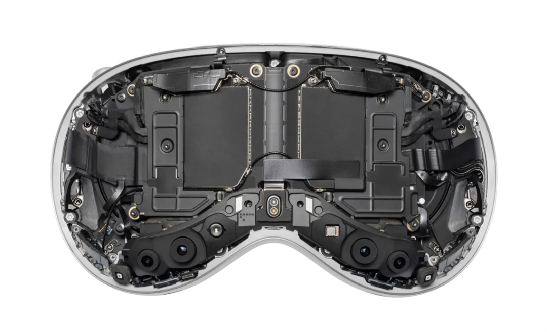 Apple Vision Pro 的微型 OLED 技术在两个邮票大小的显示屏中打包了 2300 万像素。定制的折射透镜确保了清晰度和锐度。一个独特的弧形玻璃片,通过三维成型和层压制成,不仅为观看提供了一个光学表面,还充当了所需的摄像头和传感器技术的透镜。