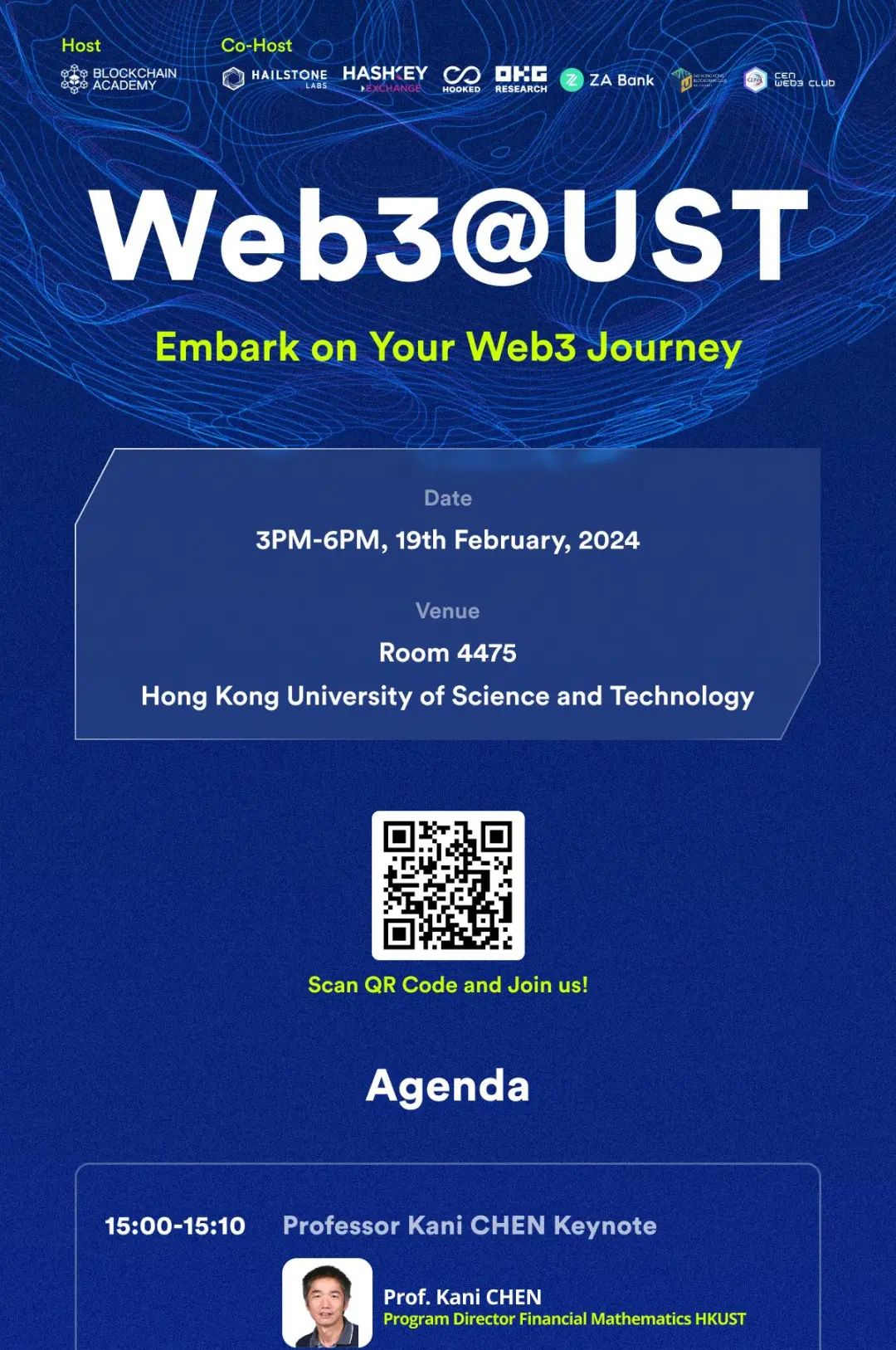 Blockchain Academy 将于本月 19 日在香港科技大学举办 Web3@Campus Season2 首站活动!深入探讨学生如何进入 Web3 行业,以及 2024 年的行业趋势分享,与您现场交流;更有独家就业机会,助您在 Web3 中迈出职业的第一步。