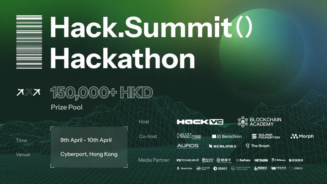 由 HackVC、Blockchain Academy 主办,RockTree Capital、Berachain、Solana Foundation、Morph、Auros、ScalingX 和 The Graph 联合主办的 Hack.Summit() Hackathon 将于 4 月 9 日至 4 月 10 日在香港数码港举行,旨在聚集全球优秀的区块链开发者,竞逐逾 15 万港币奖池。此次活动是 Hong Kong Web3 Festival 期间首个大型黑客松,协力为香港注入顶尖开发力量。