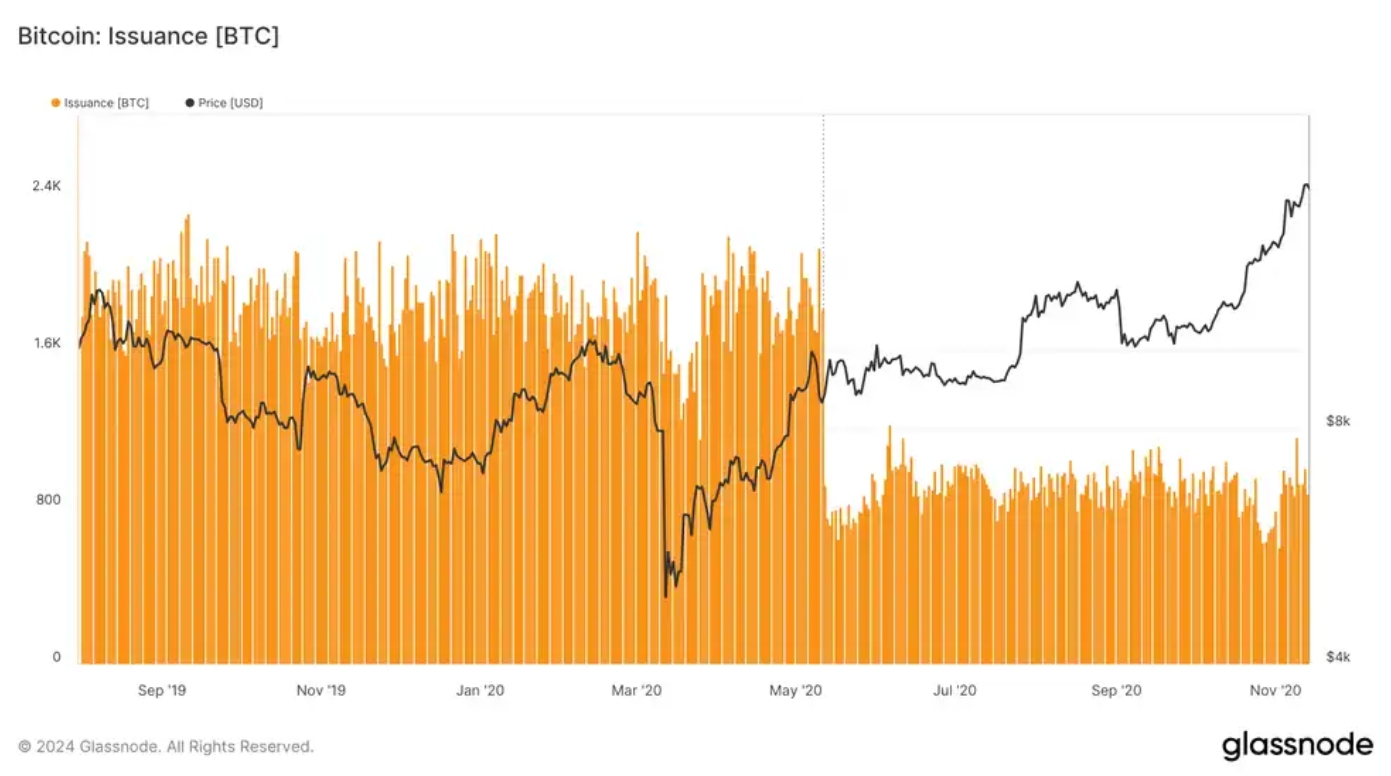 2020 年的减半呈现了一个更复杂的场景。尽管直接后果并没有反映出 2016 年所见的急剧抛售,但由于减半前的价格回升,紧接着是发行量减少,矿工经历了「双重打击」,这加剧了他们的挑战。这一时期没有出现传统的「卖出新闻」事件,但却强调了对减半事件的细腻市场反应,这些反应受到更广泛经济条件和市场情绪的影响。