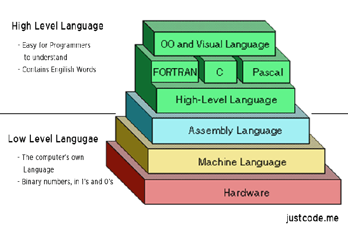 计算机语言分为低级语言和高级语言,我们平时讲的编程一般是指人类可读的高级语言编程,而计算机真正能够理解的是低级语言,用二进制数表示,它专门用来控制硬件。