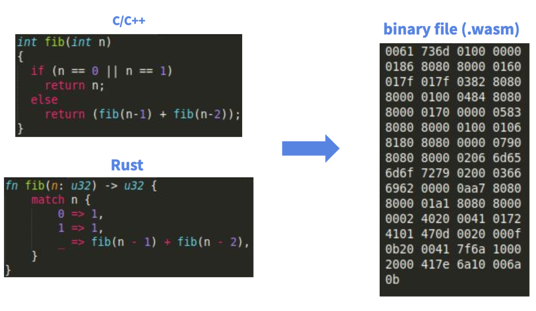 可见,WebAssembly不是一种语言,而是规定了一种虚拟指令集,可以作为各个语言的编译目标,然后通过WASM的虚拟机运行到浏览器还有其他各个平台中。