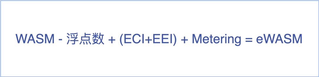 从WASM到eWASM,我们通过下面的式子来展开上面提到的“受限”和“子集”: