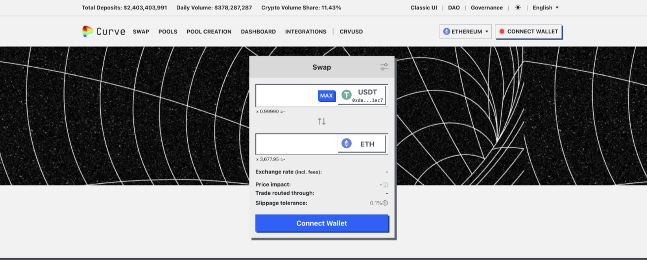 是一个以太坊上的去中心化流动池交易所,从事稳定币与挂钩资产的互换,并提供极其高效的稳定币交易。其在资产交易和流动性市场业务方面位于最大的市场规模。