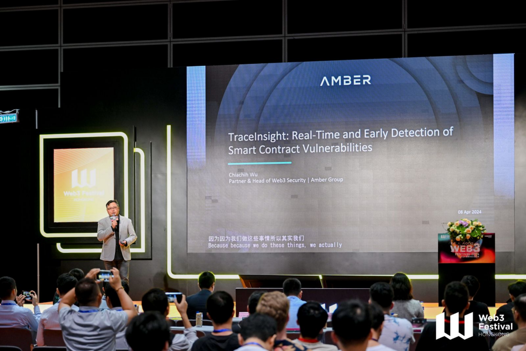 然后,Amber Group 合伙人兼 Web3 安全主管吴家志博士介绍了追踪分析智能合约漏洞的难点,并通过 Fei/Rari Capital Hack 实例演示了一套实时、早期检测智能合约漏洞的系统 —— TraceInsight。