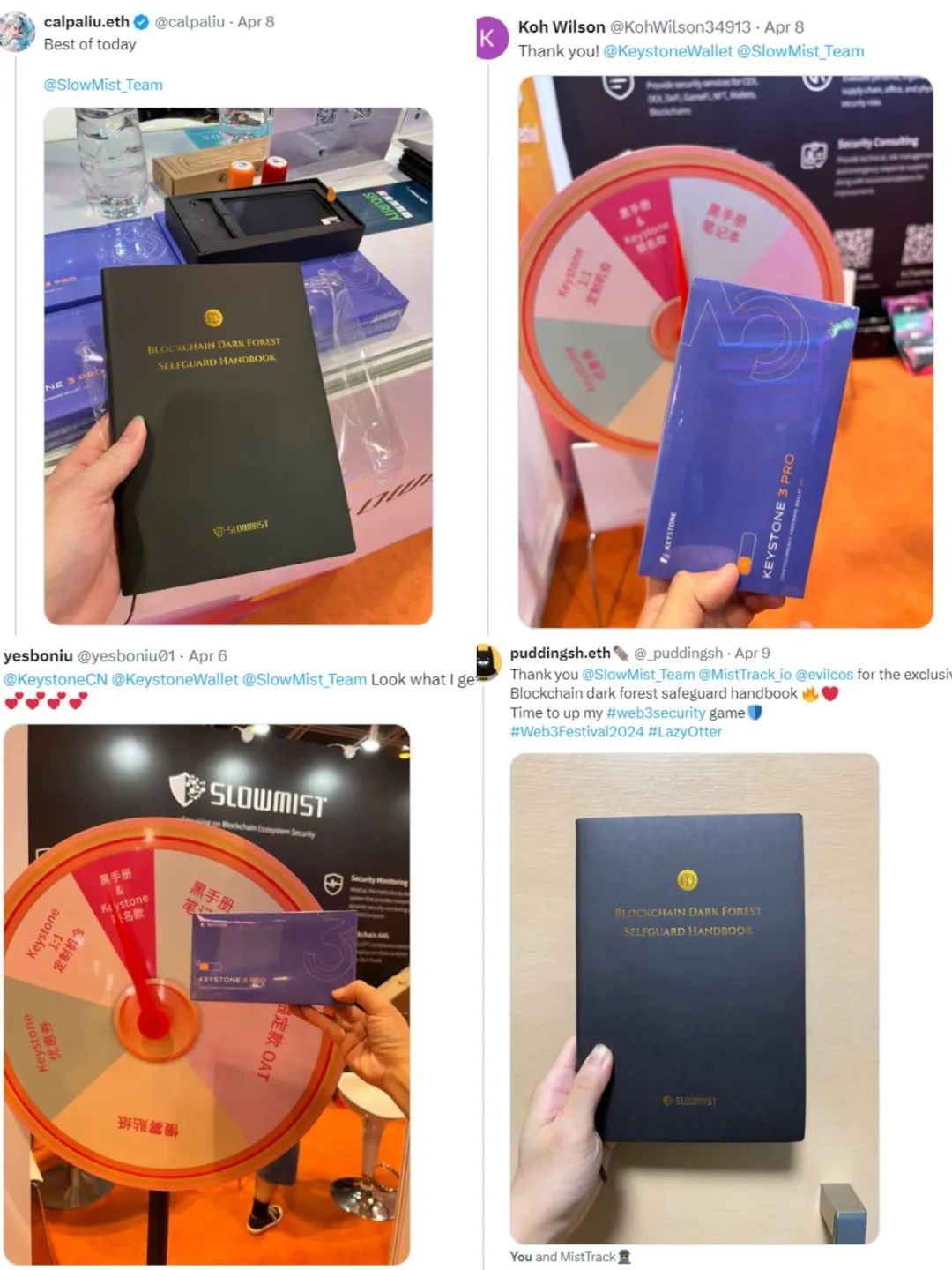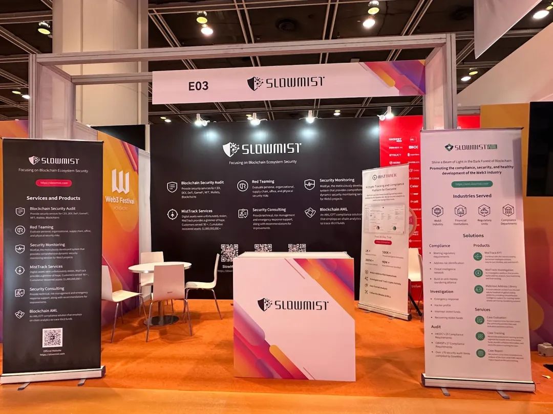作为本次盛会的白金赞助商,慢雾 (SlowMist) 在 E03 展位拥有独立的交流空间,许多慕名而来的小伙伴与我们进行了深入交流并表达了对慢雾 (SlowMist) 的敬佩与关注。同时我们也有幸结识了众多新的朋友,进行了友好的交流。此外,现场为大家准备了丰富的礼品,恭喜中奖的幸运儿。